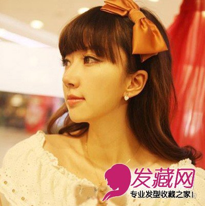 小编点评:蝴蝶结发饰彰显淑女气质,配上减龄齐刘海更是显得甜美可人。侧边头发挽在耳后,露出精致的五官,吸引眼球。
