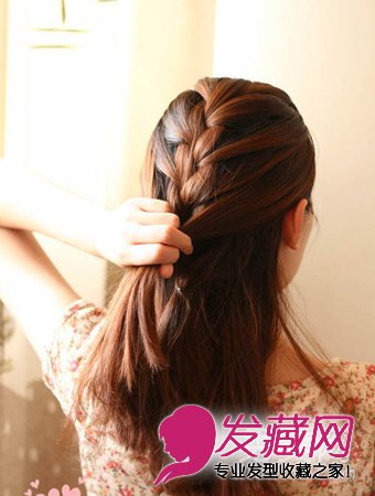 在后面,和刚才扎的辫子,绑在一起,盖在上面