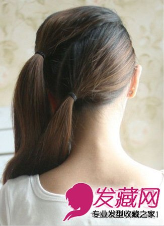 首先按图示的位置分出一条印子,然后分别扎2个马尾