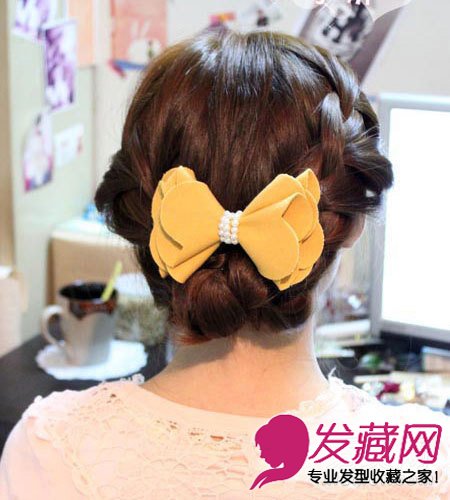 然后再带上喜欢的发饰,这样第一款盘发发就完成啦!是不是超级简单的。