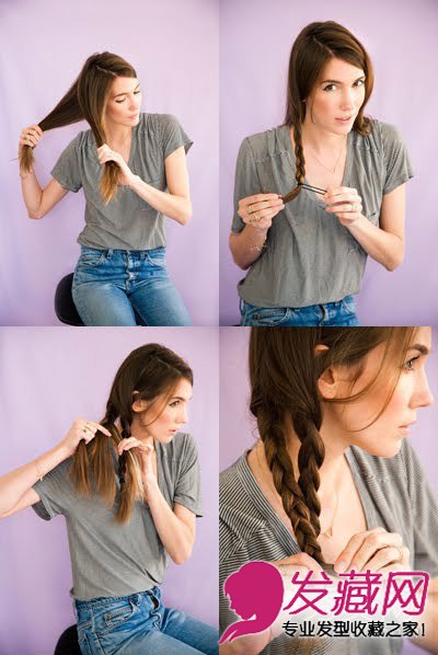 STEP1 把长发拨到一侧,分为两部分,分别编成麻花辫。