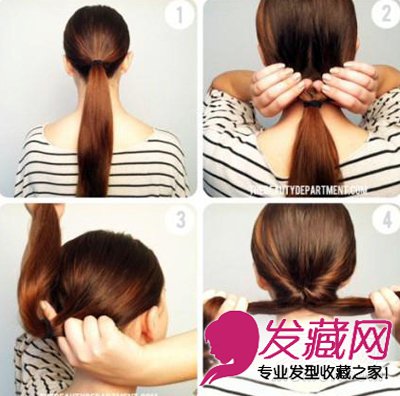 步骤一:将长发梳理整齐,用橡皮筋扎一个低低的马尾。