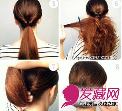 步骤七:将全部处理好的马尾往上卷起来,用一只手放在皮筋部分隔着会比较好卷哦!