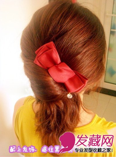 第七步:配上发饰,遮住黑色夹子,就完成了,简单又漂亮吧。