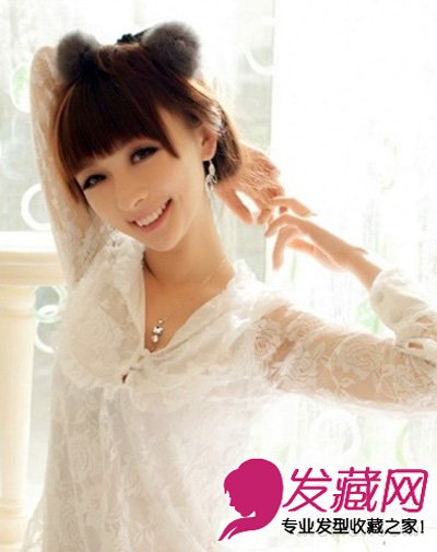 直发系的齐刘海看上去青春迷人,盘发中,发饰绝对是锦上添花,纯白蕾丝衬衫,凸显白皙的好肌肤。