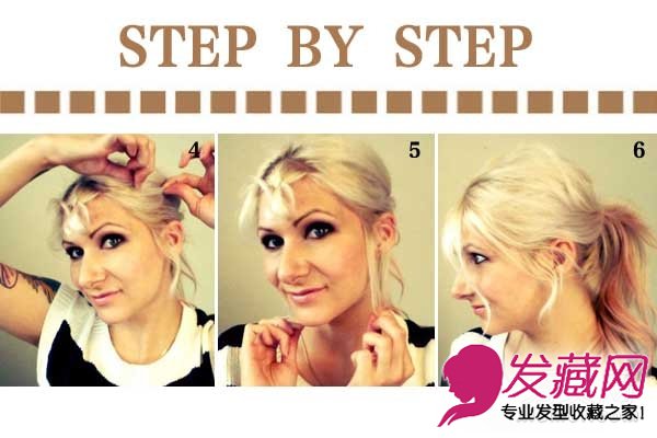 Step4:取一小部分侧面的头发,随着你的指尖,轻轻拉进,制造蓬松感。