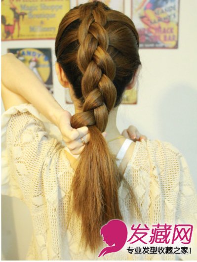 步骤五:将发辫编至脖子处时,把剩下的头发又恢复到最简单的麻花辫编法一直向下编。