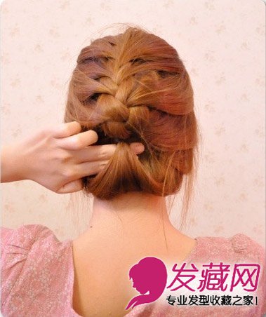 然后将马尾上拉,发尾位于编发的发窝位置