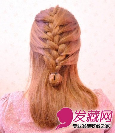 3 发尾用小皮筋固定,注意,蝎子辫的发尾不要拉出