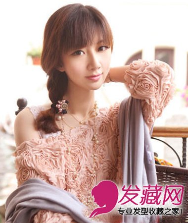 齐肩中长发发型侧扎小辫,挑染后的发丝更添韩流范儿,侧边随性的编发搭配精致的珠花点缀,不经意间展露出优雅淑女范儿。