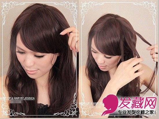 步骤1、将头发梳顺好,先在发顶的一侧挑出三缕发丝
