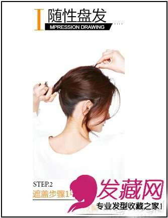 放下上方的头发,以顺时针扭转到底,注意扭转的位置要偏低,隐藏住步骤一中盘发的发髻。