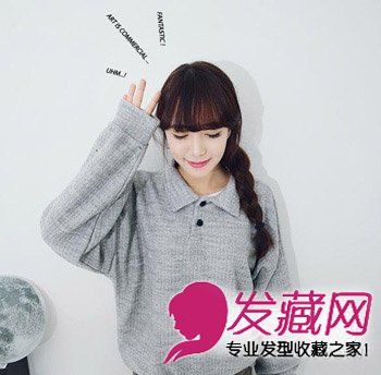 厚重微卷的齐刘海,头发简单的扎成一个马尾辫,放在肩膀一侧,简单又很有气质。
