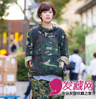 将两侧的发丝随意的挂在耳后,侧分的刘海起到很好的修饰脸型的作用,短发的设计更为时尚新潮。