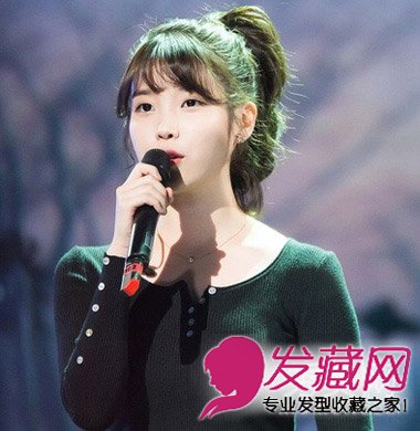 甜美的韩式马尾辫扎发,长卷发MM打理这款发型更显气质,高扎发辫展露青春活力气息,碎剪的刘海修颜透气。