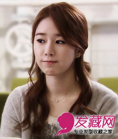 很有温婉淑女气质的一款韩式公主头发型扎发,简单的半披肩发型搭配微蜷的烫发长发更显淑女气息。