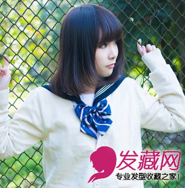 日系甜美中长发发型,齐肩长度的短直发,柔顺质感的乌黑发丝最能凸显出MM的清新甜美气质。