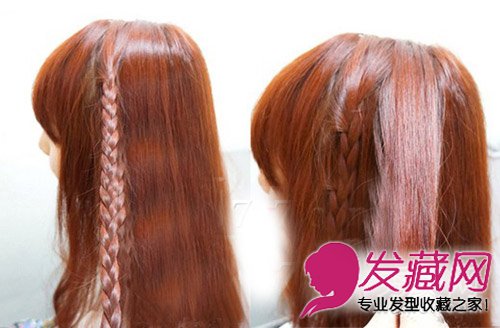 STEP2:一直编到发尾,用小皮筋固定,再取出一束头发。
