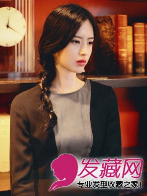 走淑女路线的女生偏爱的一款气质范儿韩式发型扎法,乌黑长发在一侧扎简单的蓬松发辫造型,随性的扎发打造出安静甜美的淑女气质。