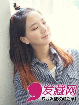 喜欢直发的妹纸绝对不能错过的一款韩式挑染直发,这样一款挑染咖色的直发是不是看起来甜美又个性呢,将刘海扎起成苹果头的造型,俏皮清新。
