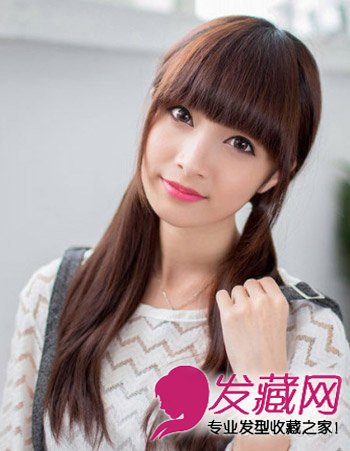 厚重感刘海发型搭配上一款甜美的双马尾发型。不要说双马尾显幼稚什么的,毕竟你还是一个学生,可爱一些有什么不好呢!