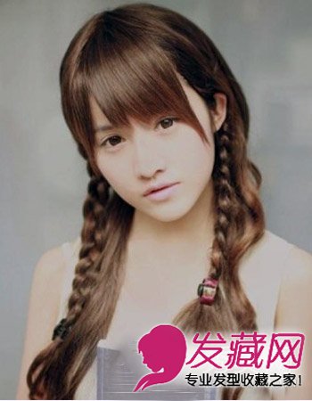 颇有邻家小妹的感觉。碎发刘海与微卷发型的搭配。而且一边一条麻花辫编发。手捧书卷尽显清纯与气质。