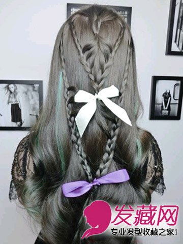 非常精致繁复的一款编发设计,柔顺的披肩长发搭配浅绿色的挑染,更能凸显甜美气质,双层编发令整体造型更显精致甜美。