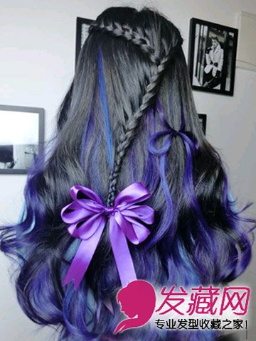 紫色一直以来都被视为高贵神秘的代表,这款长卷发加染这款染发颜色更加有优雅迷人的女人味,编发搭配紫色系发带,浓郁的法式风情弥漫。