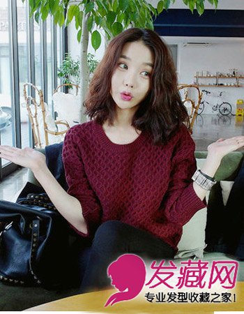 这种时尚的蓬松发型当然比较显轻熟女一些,时尚的齐肩发型与一款个性的韩式烫发型搭配起来,颇显优雅的知性OL范。