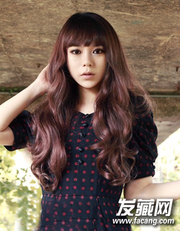 斜斜的碎刘海一路打下来显露出别致的气质来,发尾的大卷处理得具一格,加上大卷发的气质感 完美的显露出气质来,十分抢眼。