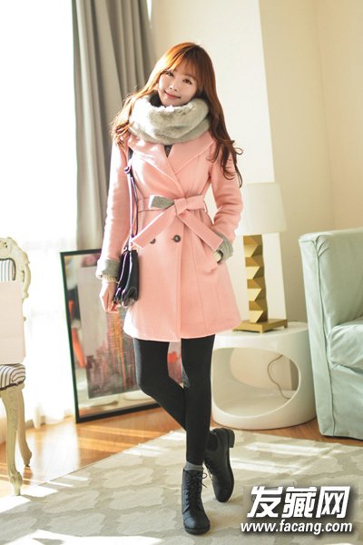 漂亮的长卷发发型,韩式烫发发型搭配粉色大衣甜美清新,变身时尚萌妹,可爱迷人。