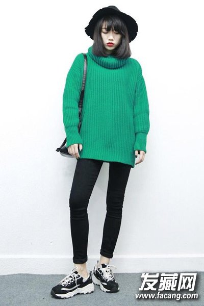 略带文艺气息的波波头短发发型,自然的黑色头发呈现简约复古感,搭配毛衣和帽子又增添年轻人专属的时尚感。