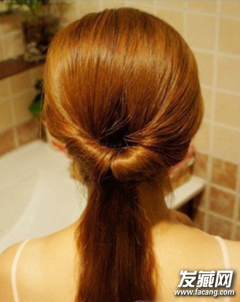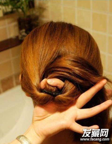 从洞里将扎好的马尾抓起往洞里拉进去,记住要好好弄,不要把头发弄得太乱了。