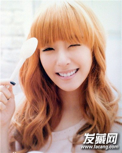 少女时代的Tiffany,时尚潮人。中分显得成熟感,搭配两边长卷发修颜瘦脸,卷发浪漫随性,深色发色衬托出白嫩肤色。