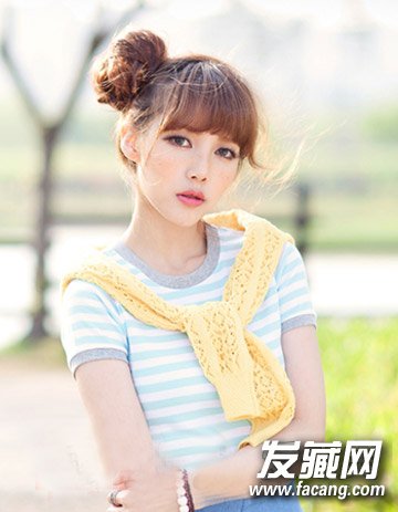 侧扎的丸子头清新可爱,又显得朝气蓬勃,齐刘海甜美修颜减龄,这款发型设计非常的适合周末出游哦!