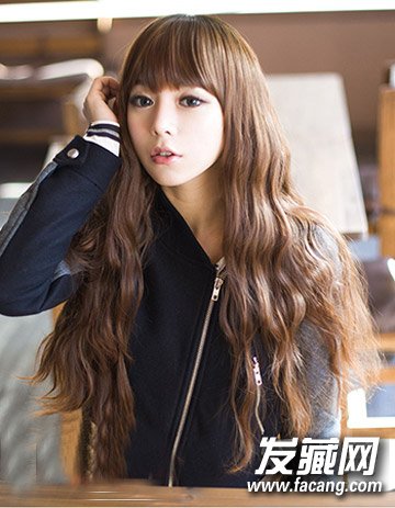 齐刘海的长卷发发型,浪漫又甜美,还能衬托的小脸蛋可爱有加。