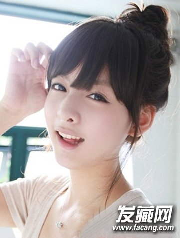 长刘海增加可以显露出无比的时尚感来,个性的丸子头盘发打造出十足的时尚与个性来,显露出无比的甜美与时尚感来。