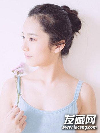 减龄清新的韩式可爱丸子头发型,露额的扎发清爽自然,略显蓬松的扎发留出少许鬓发修颜,甜美可爱的学生发型设计。