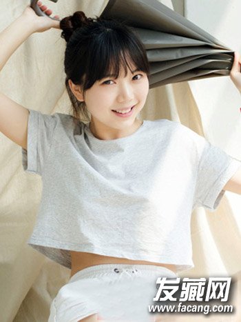 百搭简单好打理的韩式齐刘海丸子头扎发,乌黑莹亮的长发扎蓬松感发髻,高发髻扎发很适合夏季打造,甜美清爽。