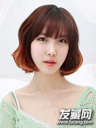 瓜子脸女生适合什么发型呢?这款空气刘海短发的韩式发型,打造成大波浪卷发的造型,渐变色系的染发造型,搭配白皙的瓜子小脸,时尚又柔美。