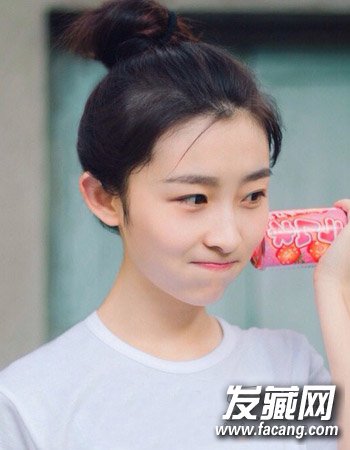 很可爱的一款花苞头盘发发型,清爽的露额发型的设计与高扎发型的设计,凸显出别致的活泼的小清新感来,时尚而且有范。