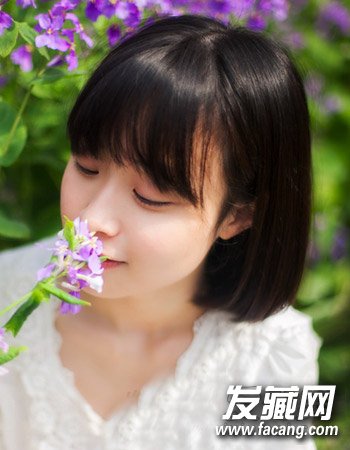 甜美的内扣刘海与中短发搭配起来,气质的中短发与平刘海勾勒出个性与时尚的一面来,柔顺的中短发时尚有个性。