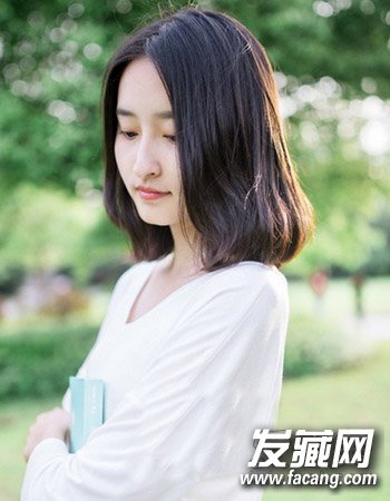很有文艺女性范的一款齐肩发型整齐 的发尾与整个造型搭配得恰到好年,气质的中分修颜显瘦。
