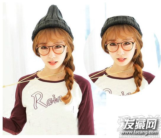 微显凌乱感的刘海发型设计是不是也很显小女生的俏皮感呢?而配合这种简单的侧边辫子扎发与明亮温暖的橘黄色染发颜色更添小女生的青春活力风。