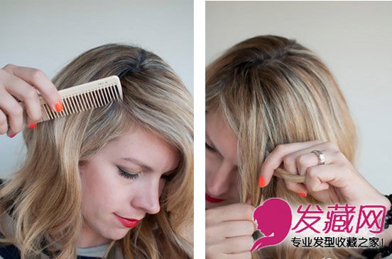 step1:先用密齿梳将卷发打理一下,按照1:9的比例分出刘海。