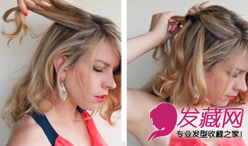 step2:将前后两束发束交叉,再将中间的发束从交叉的结点垂下来。