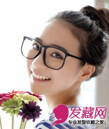 校园清纯MM最爱的露额发型,高扎花苞头发髻,打造出清爽简单的学生气质发型,搭配眼镜,很书卷气的乖乖女。