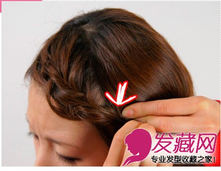 step2:再将辫子的发尾固定后用发夹别进头发内侧。