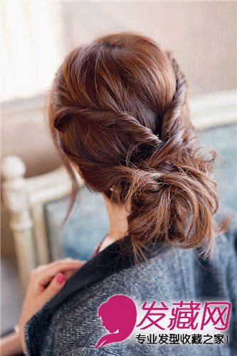 毫无发饰的超简洁发型拧转式成熟气质花苞头