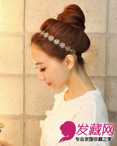 非常简单的花苞头,大大的花苞头,看上去感觉脸变小了,有点松散的发丝,依然很显气质,甜美的发饰,为整个发型加分哦!